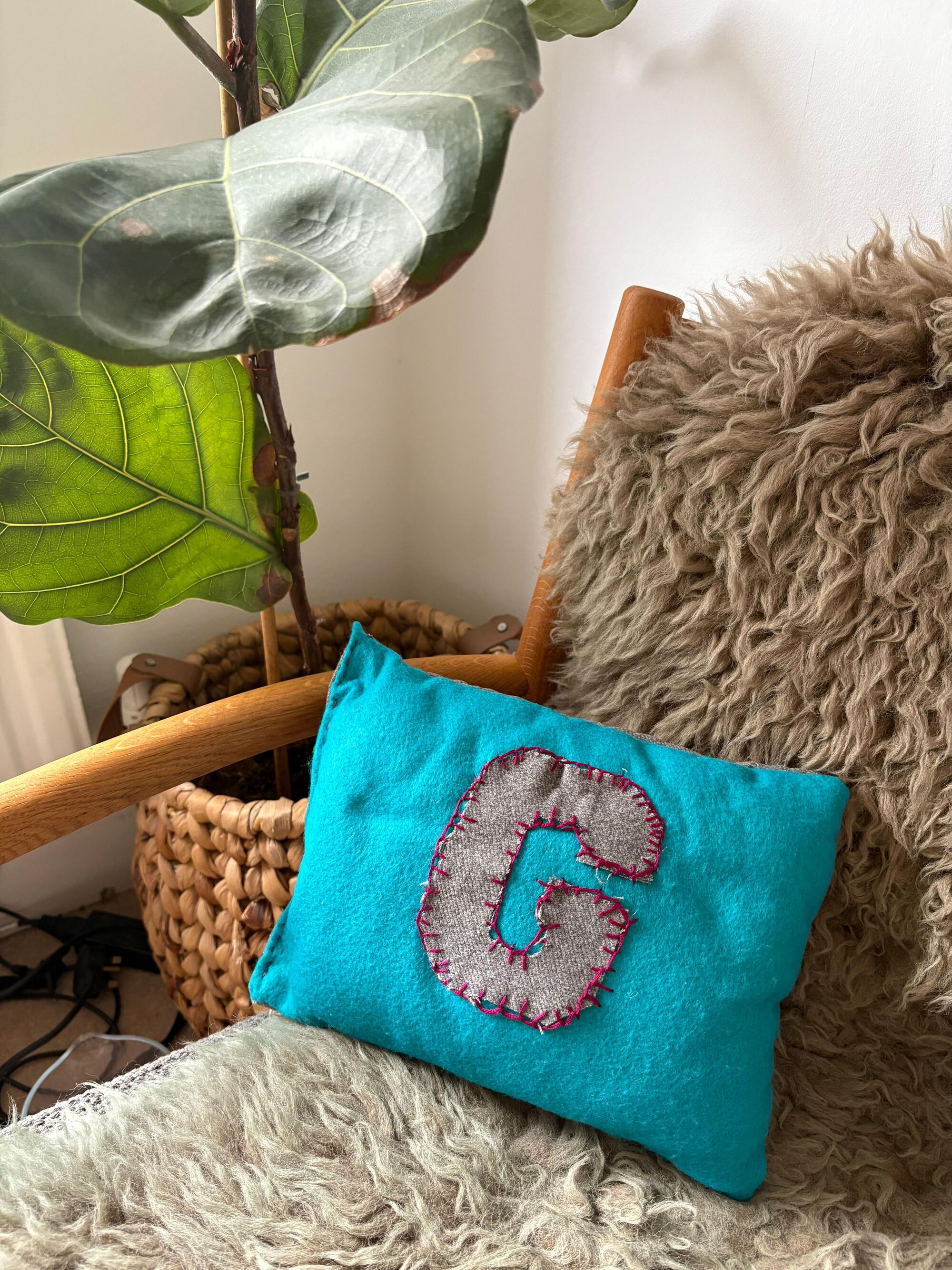 Anyway, this weekend, in an effort to reduce screen time (and avoid going out in the rain), I talked him into a day of craft. His challenge: make me a cushion. He’s done some sewing at school, so he’s got the basics. We spent three lovely hours chatting, playing tunes, and crafting - and look what he made me!